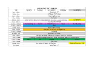 Camp Cassey 2026 – Pioneers Normal Day